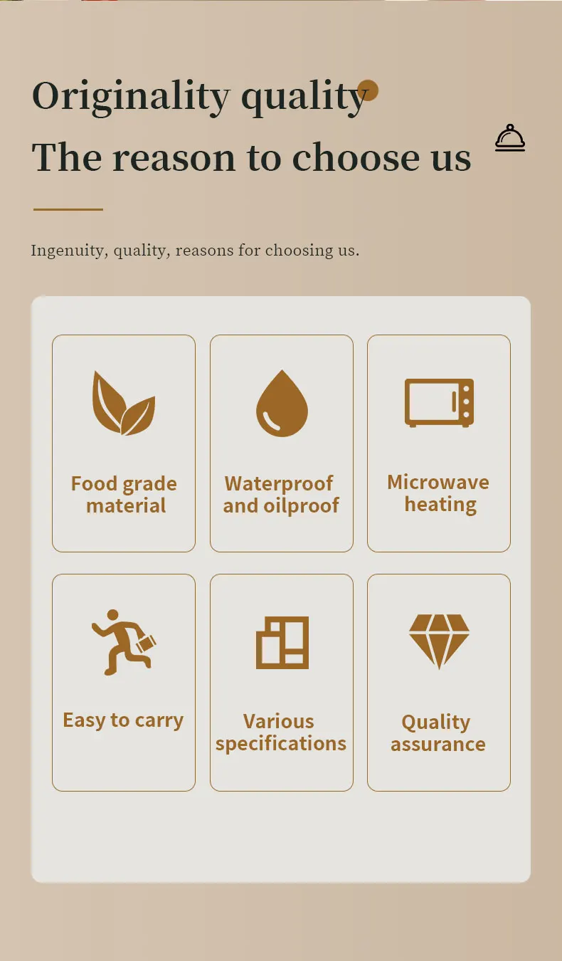 1. The boxes are made of high-quality food-grade materials that can come into direct contact with food. You can use it with peace of mind.