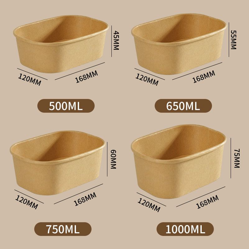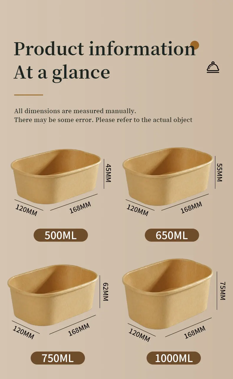 Product: Disposable Brown Rectangle Kraft Paper Bowl With Lid