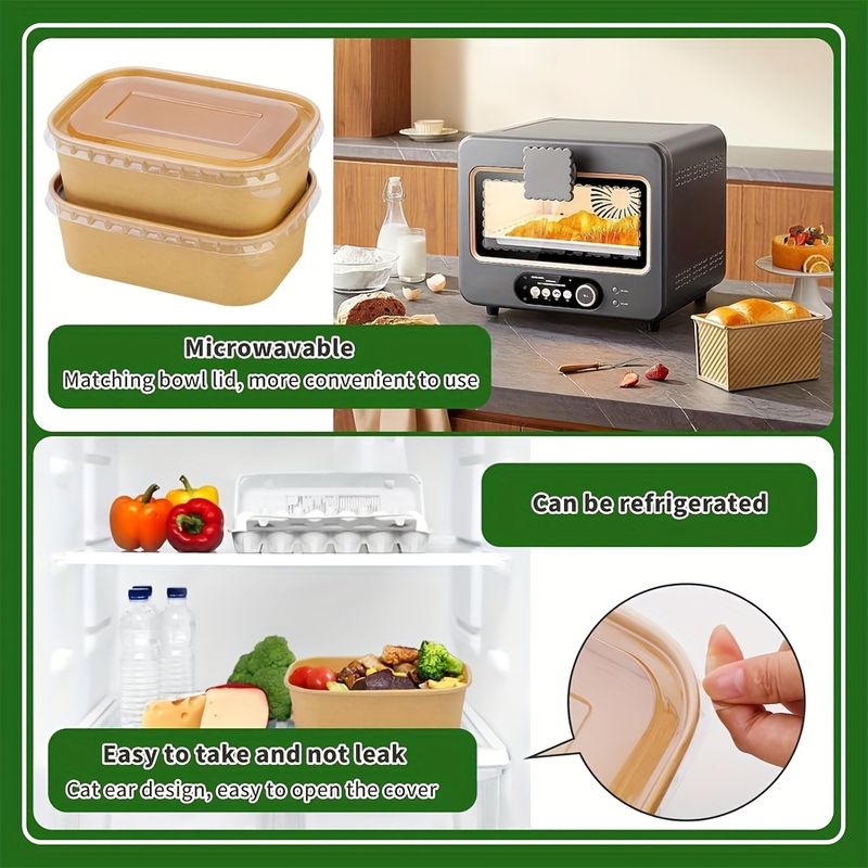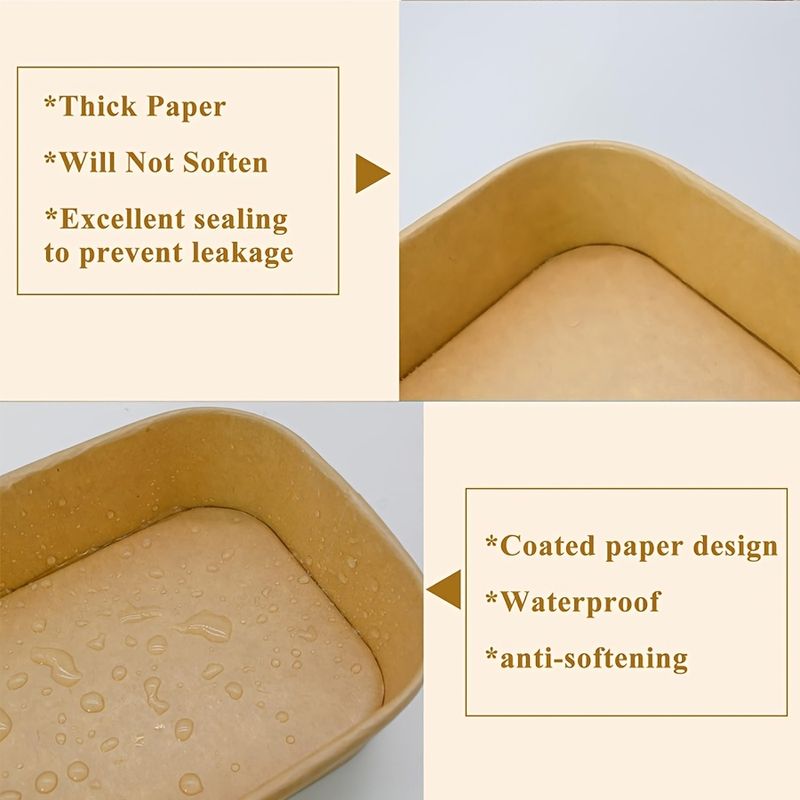 Product: Disposable Brown Rectangle Kraft Paper Bowl With Lid