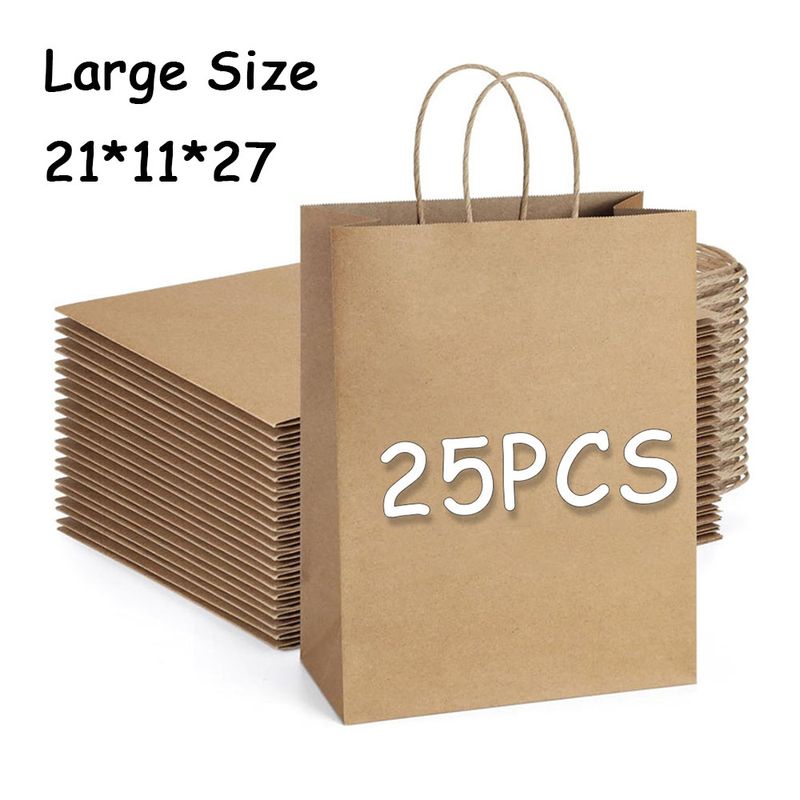 25pcs Kraft Paper Handheld Shopping Bags Restaurant Coffee Bakery Takeout Disposable Bulk Eco Friendly Gift Packaging