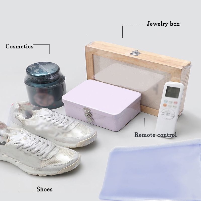 【Easy to Use】 High shrinkage rate, you just put the things in the shrink bags and then use hair dryer to shrink and seal bags evenly until it is surrounded completely.