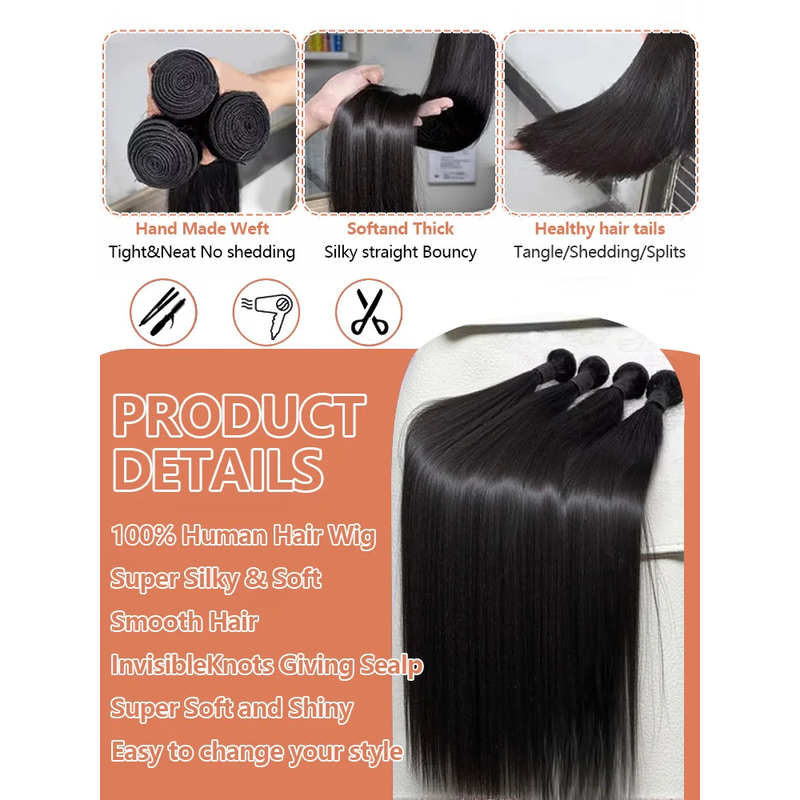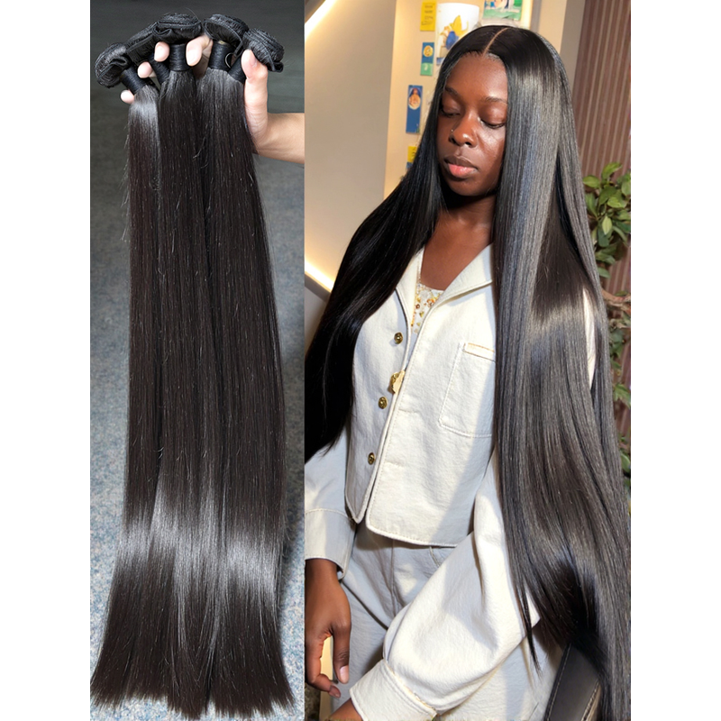 26 28 30 40 Inches Straight Human Hair Bundles Brazilian Raw Remy Weave 100% Unprocessed Extension Weft Natural Black For Women