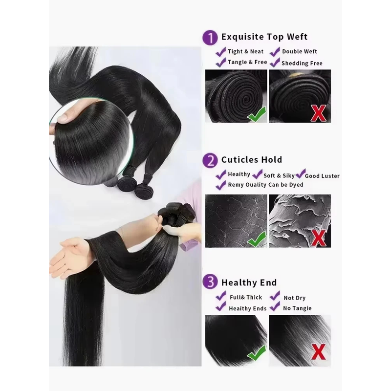 26 28 30 40 Inches Straight Human Hair Bundles Brazilian Raw Remy Weave 100% Unprocessed Extension Weft Natural Black For Women