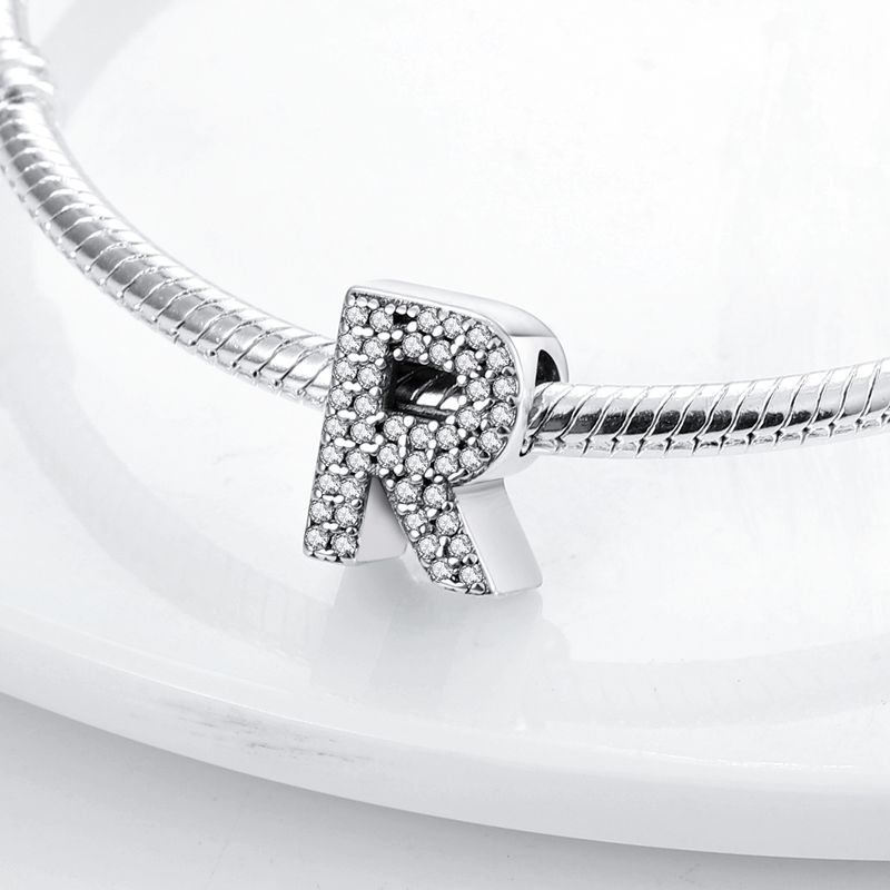 26 A-Z Alphabet Beads 925 Sterling Silver LOVE Letter Charm Fit Original Bangle Charms Bracelet CZ Zircon Bead Jewelry
