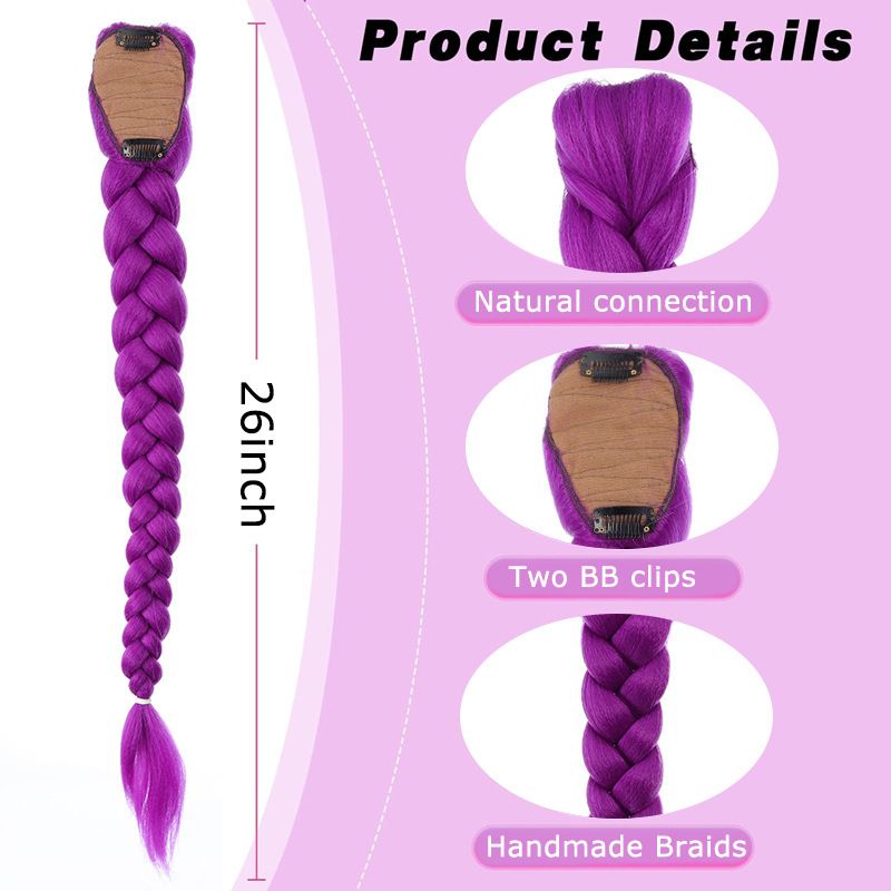 26-inch synthetic woven purple hair ponytail cosplay costume hairstyle for children girls Halloween Christmas