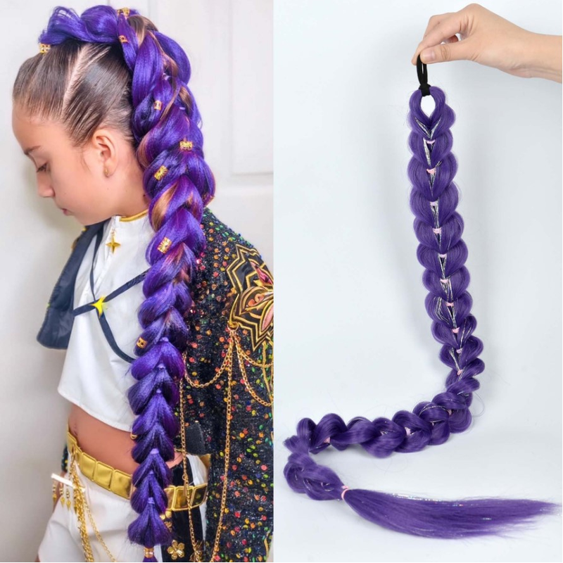 26-inch synthetic woven purple hair ponytail cosplay costume hairstyle for children girls Halloween Christmas
