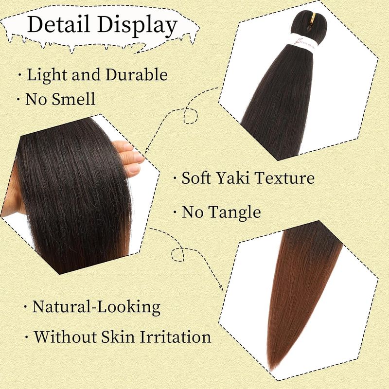 26inch Prestretched Knotless Kanekalon Hair Long Straight Synthetic Box Braids Yaki Texture Hot Water Setting Hair Extension