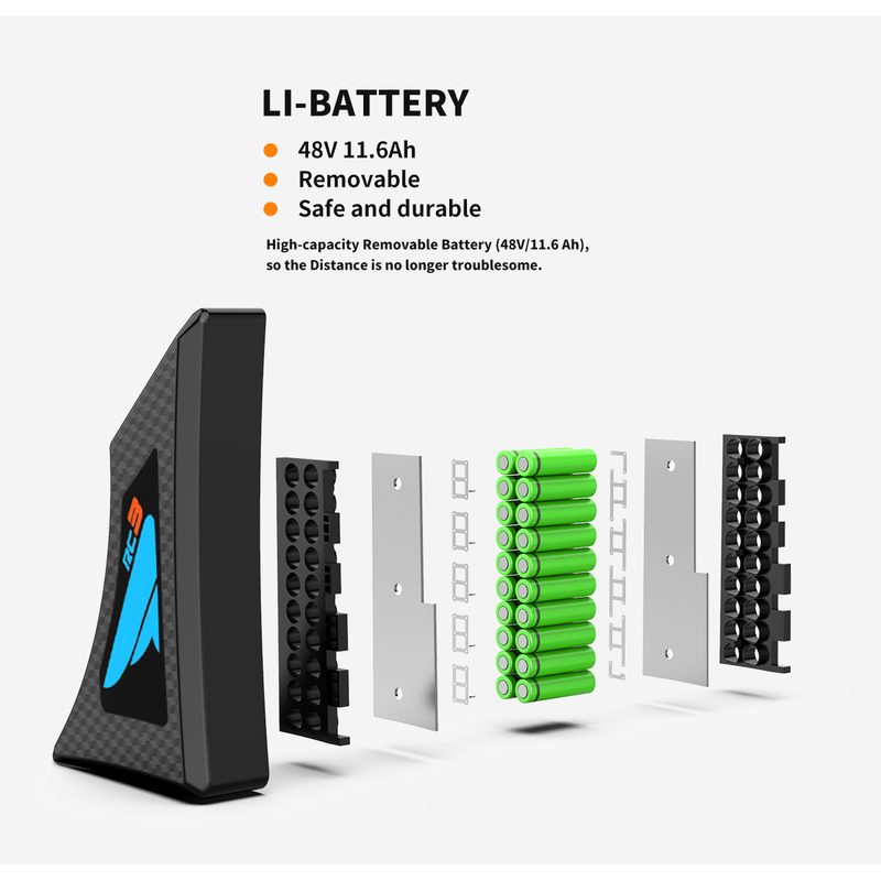 500W brushless motor provides strong power and can easily cope with small slopes; the maximum speed is 25mph, and the 48V15ah large-capacity lithium battery can support a riding distance of 20-35km (pure electric mode).