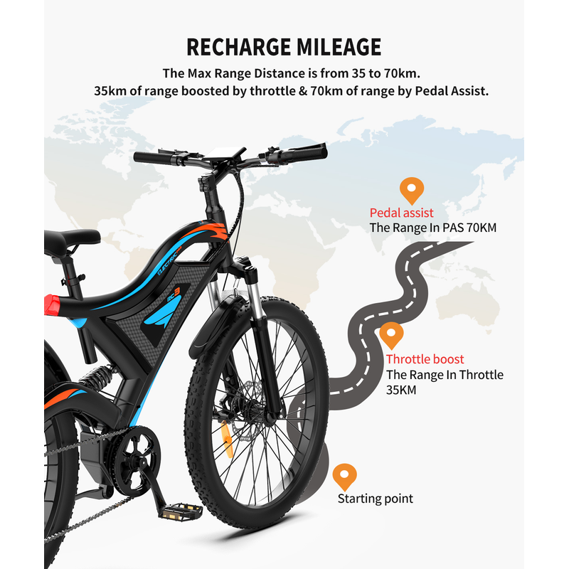 our mountain electric bicycles have 3 working modes: pure electric mode, pedal assist mode & pure pedal mode.