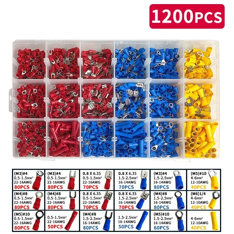 280-1500pcs Cold Pressed Wiring Terminal Combination Box with Crimp Spatula Butt Ring Fork Kit Ring Lug Rolled Terminal Kit