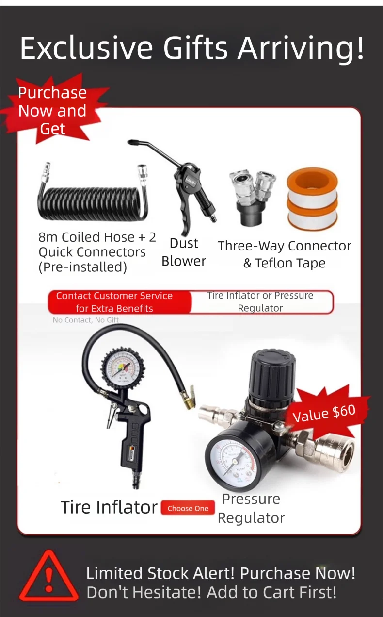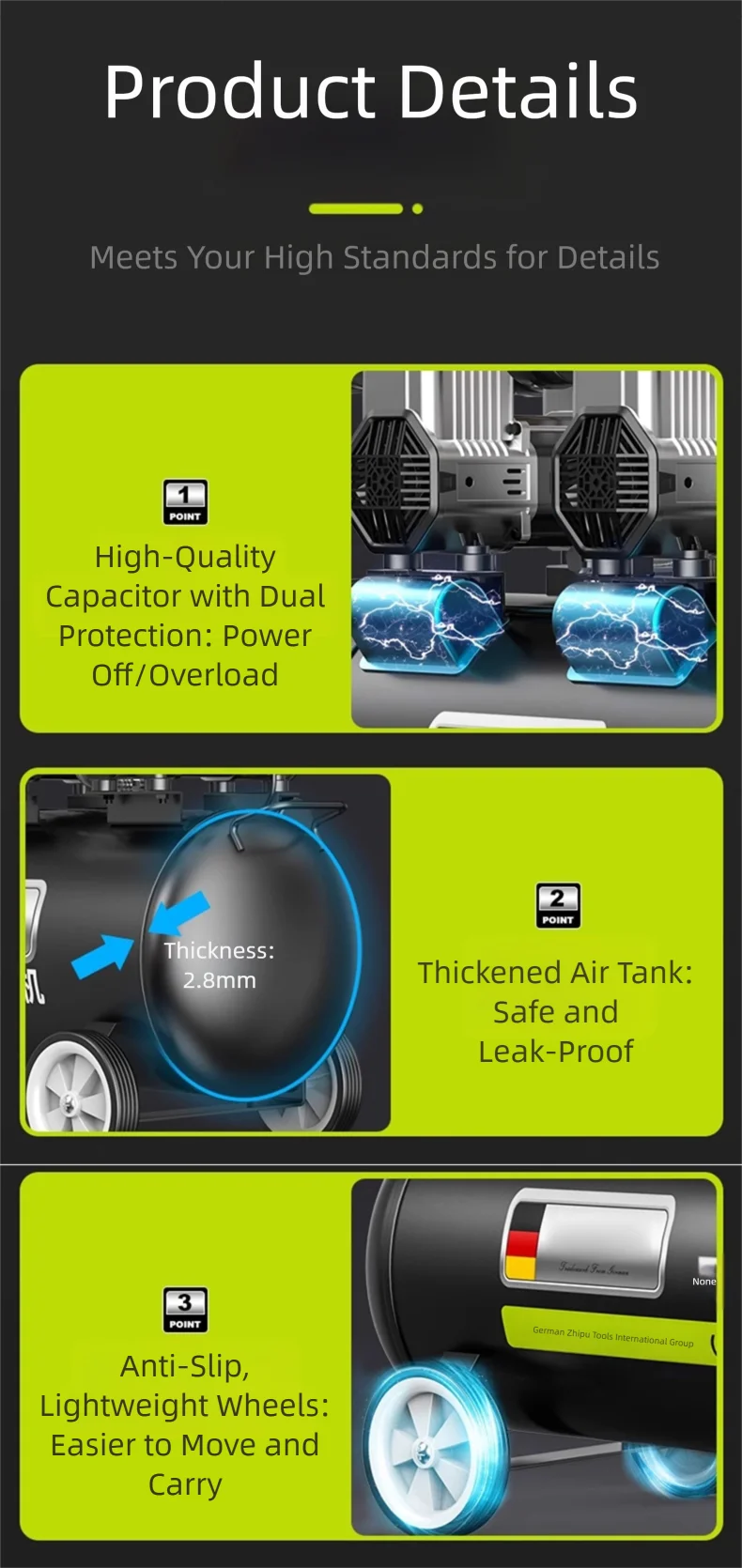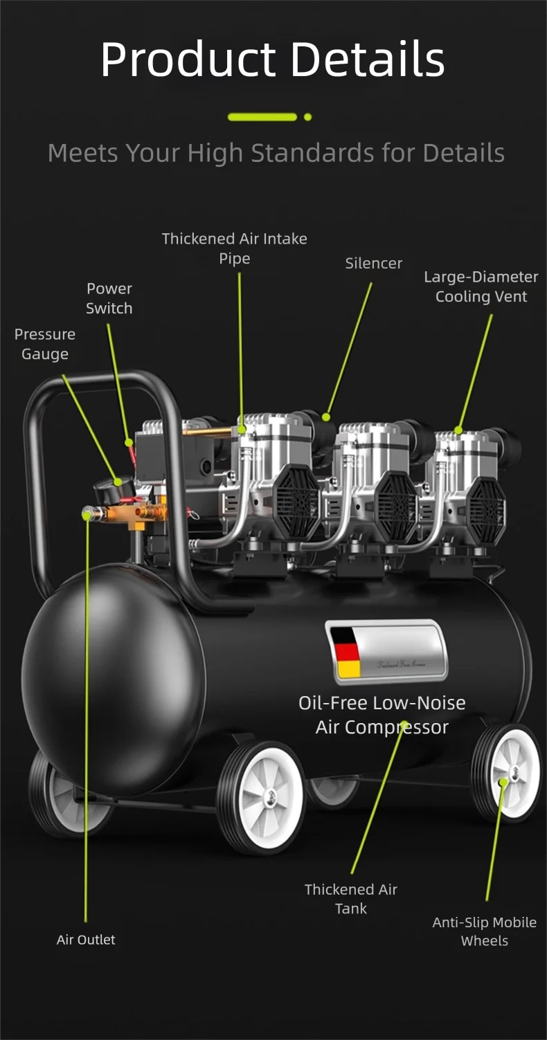 2800r/min Air Compressor Silent Oil-Free Air Compressor for Woodworking Car repair High Pressure Inflator Pump Compressor Pump