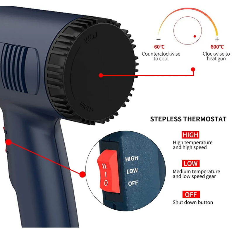 Note:All hot air guns are delivered in bubble column packaging (except for overseas warehouses), because the paper box will increase a lot of freight. In order to give you the most affordable price, they are packed in bubble column without instructions. The pictures of the instructions will be displayed in the description. Thank you for your understanding.