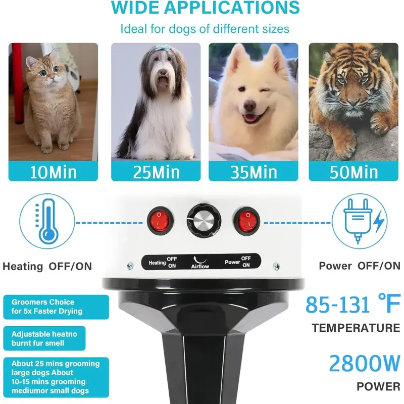 2800W Hair Dryer for Dogs Pet Grooming Blower Warm Wind Secador Fast Silent Pet Dryer Drying Machine Stepless Speed Regulation