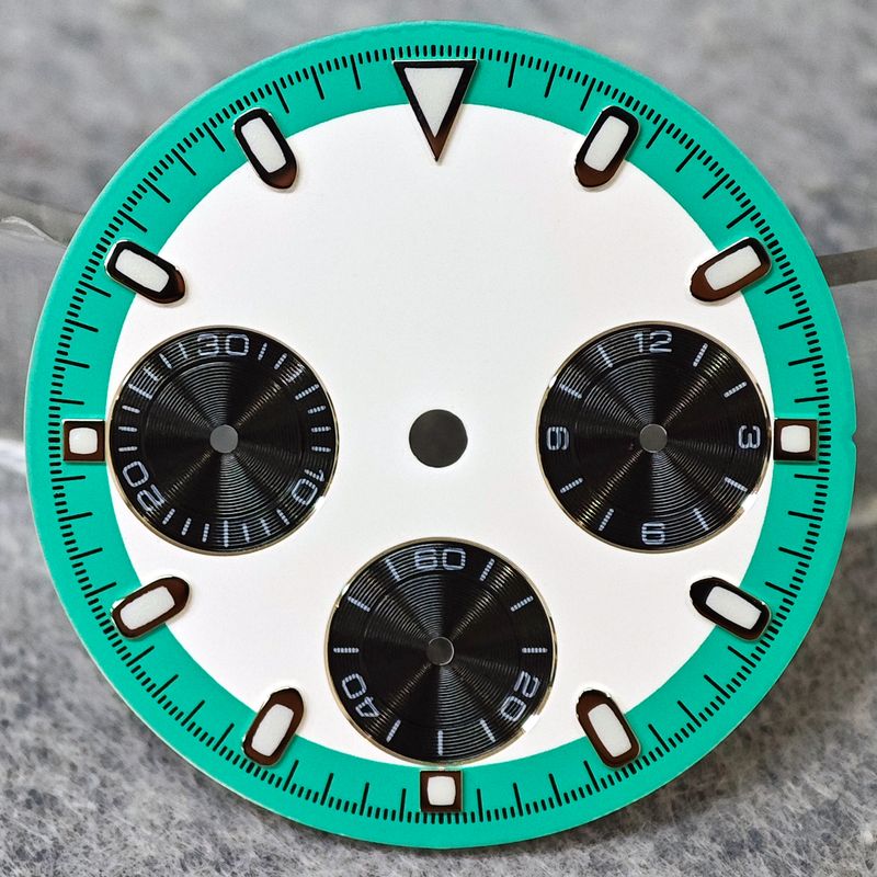 29mm VK63 Dial for Quartz Movement Chronograph Face 6 Hands Watch Parts Green Luminous Fit for 39mm Watch Cases
