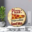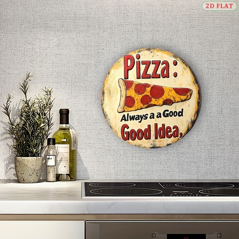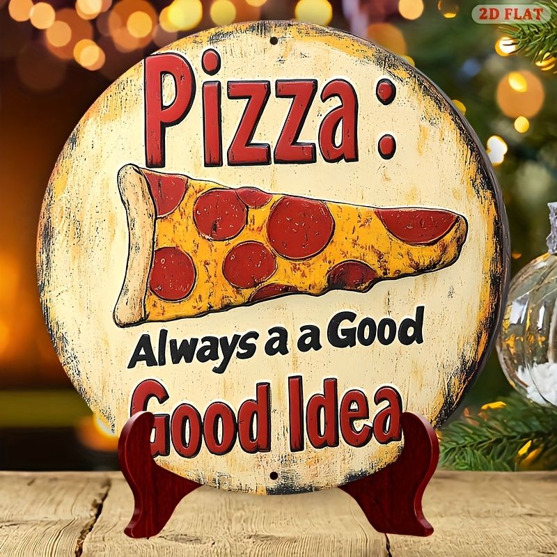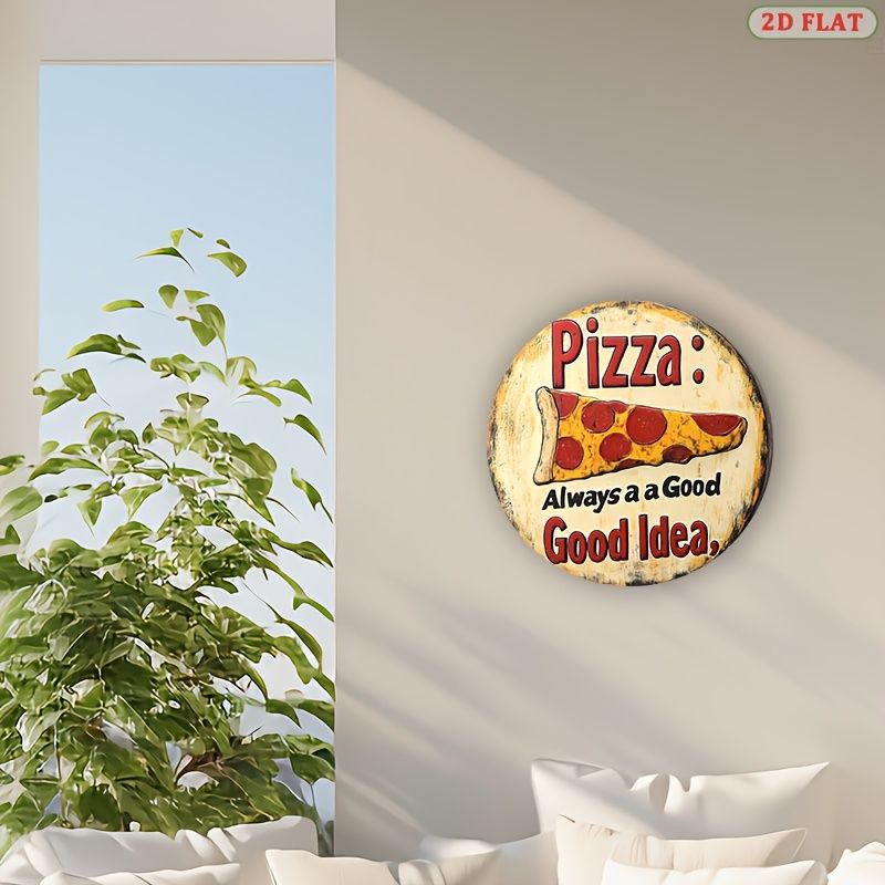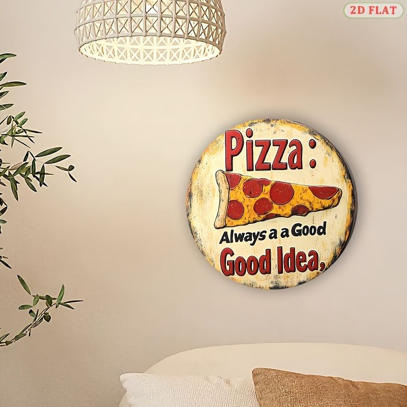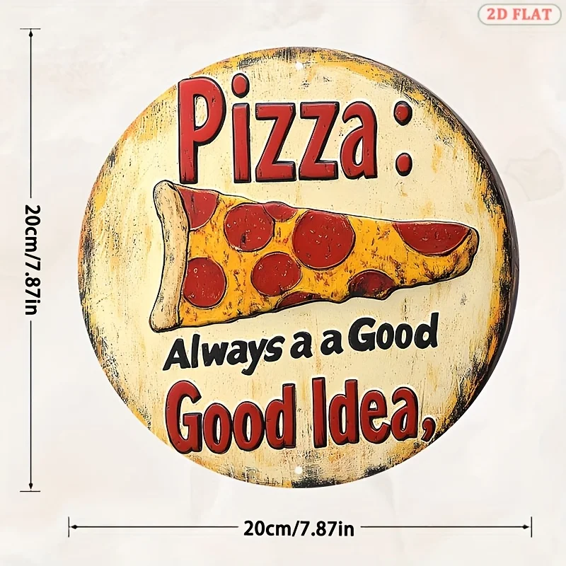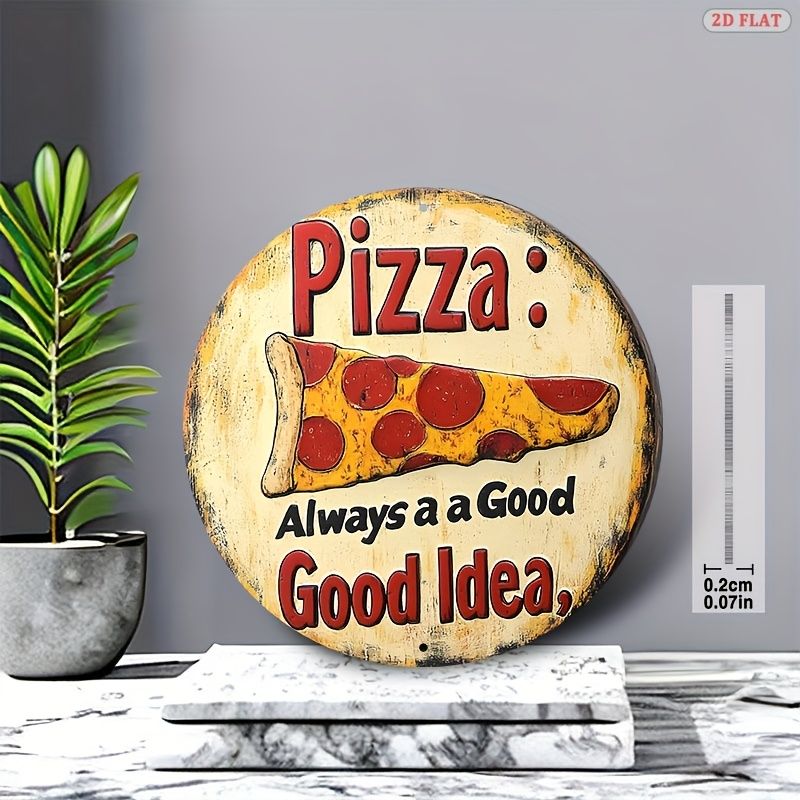 [2D Flat] 1pc Retro Style Pizza Metal Wall Art Sign - 19.99x19.99 cm Round Aluminum Decor with "Always a Good Idea" Pun, Vintage