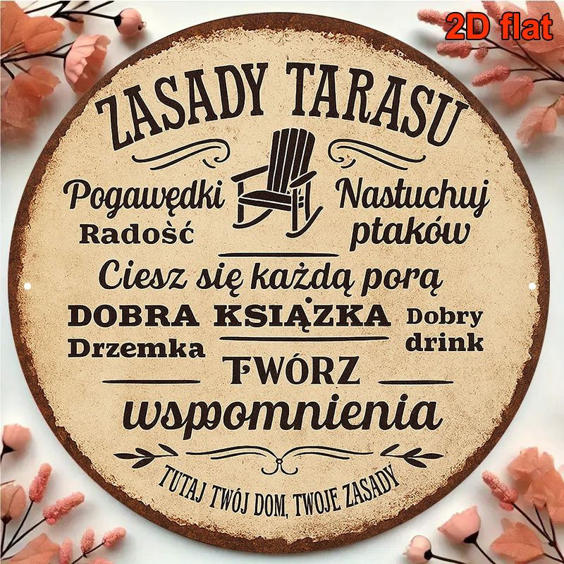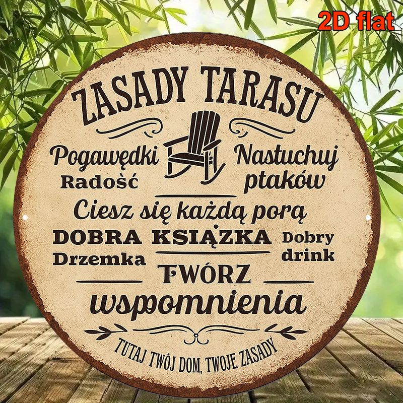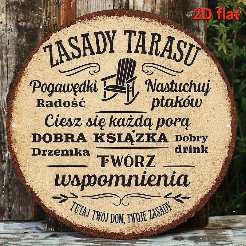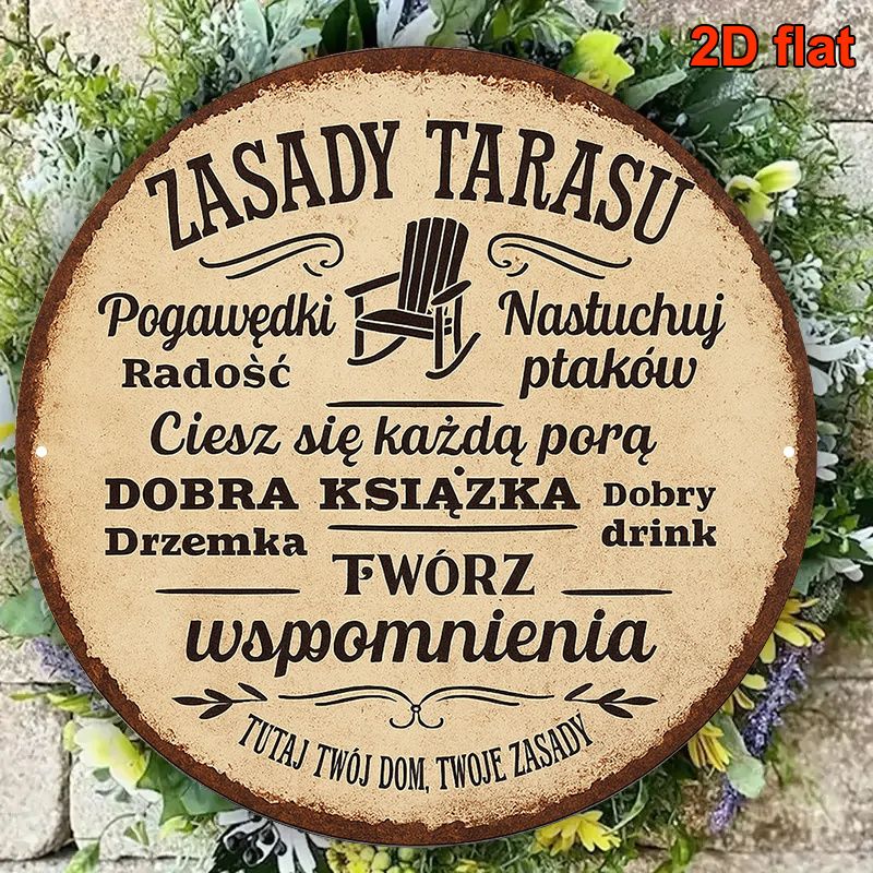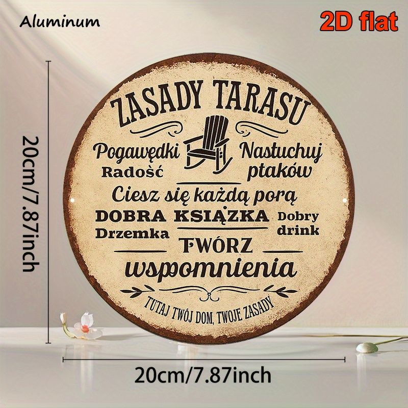 2D Flat, 20.32x20.32 cm Round Polish Language Aluminum Sign - Vintage Decorative Plaque for Garden, Patio, Terrace, Balcony & Vi
