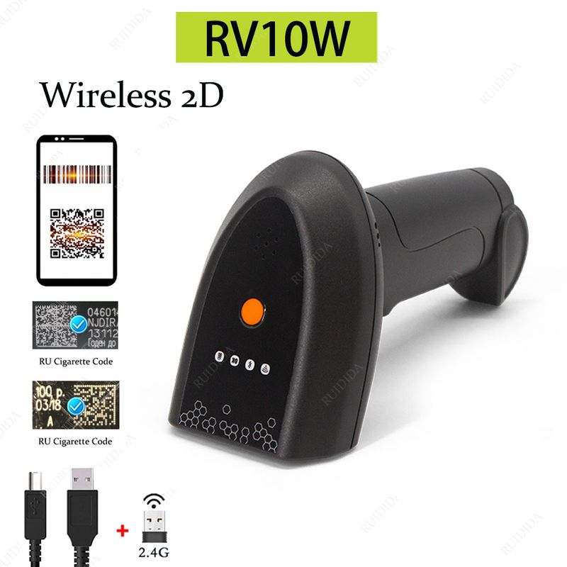 2D Wired Scanner or Wireless Barcode Scanner or Bluetooth Reader Wireless Scanner 2D Handheld Barcode Reader QR Code PDF417