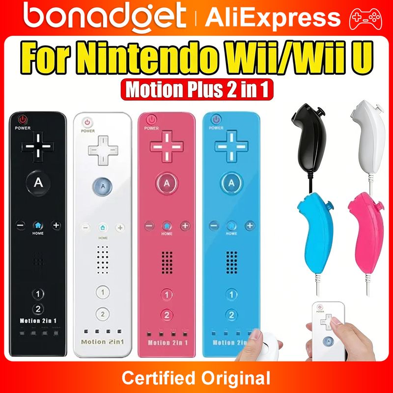 2in1 For Nintendo Wii Controller Set W/ Motion Plus Wireless Joystick Gamepad Remote Control W/ Silicone Case Video Game Console