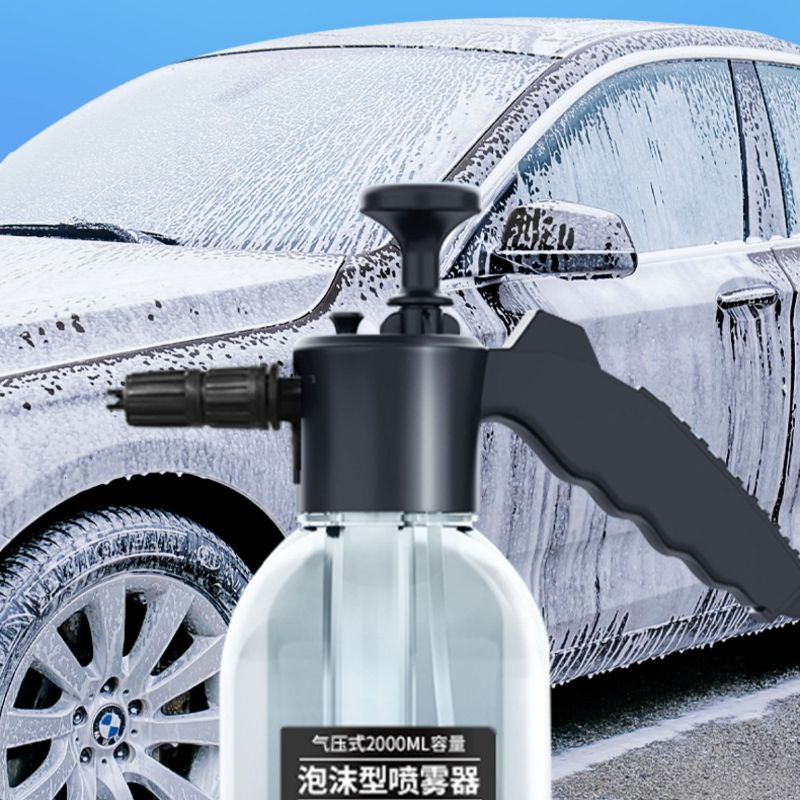 Car wash with fan nozzle, foam pot pot body has a scale, add water can not exceed 1.5L car wash liquid and water ratio 1:50, the bubble effect is better; The number of pressure pumping (there is obvious pressure, it is difficult to press the handle to press down) stops the pressure, and the lock switch can be lifted to spray foam car wash. Note: Continuous pressure pumping is prohibited