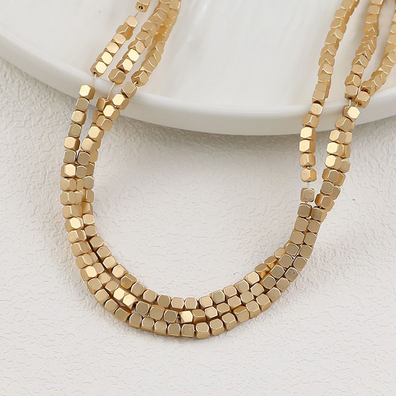 Name: 2mm 3mm Square Stone Bead Matte Plated Gold Silver Rose Color Hematite Loose Beads For Jewelry Making Bracelets DIY Accessories