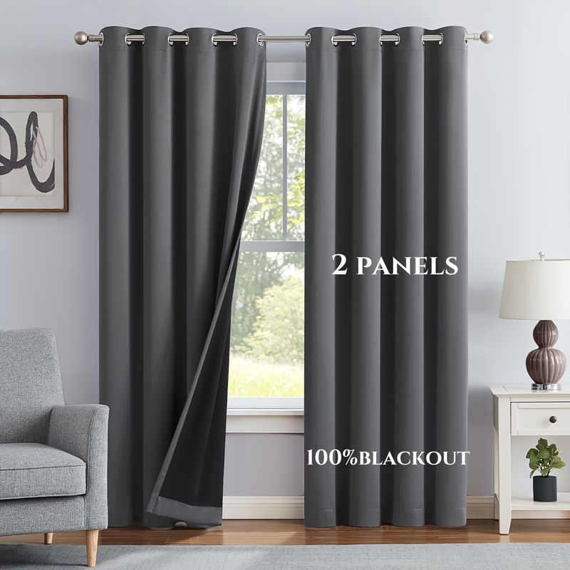 2panels Modern 100% Blackout Solid Curtains, Window Curtains for Living Room, Bedroom, Kitchen, Prevent Ultraviolet Rays Draps