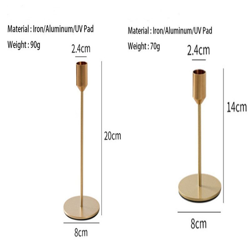 2pc Gold Candle Holder Metal Crafts Wedding Holiday Candlestick Modern Simple Wrought Iron Crafts Home Decoration Accessories