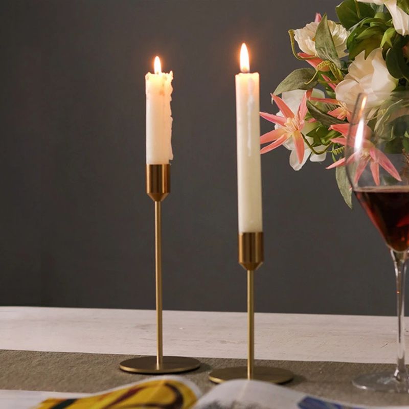 2pc Gold Candle Holder Metal Crafts Wedding Holiday Candlestick Modern Simple Wrought Iron Crafts Home Decoration Accessories