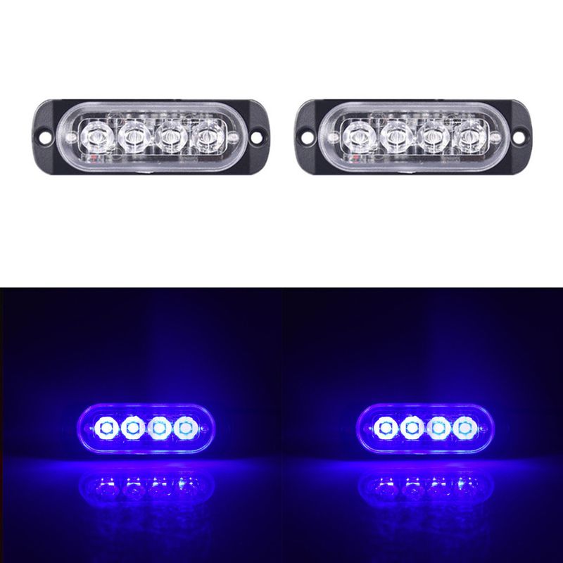 2PCS 12-24V Amber Strobe Side Warning 4 Led Grill Flashing Lightbar Breakdown Emergency For Truck Trailer LED Light
