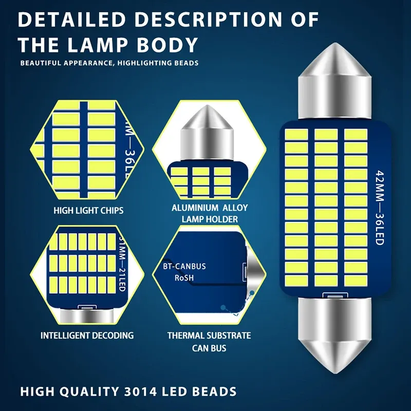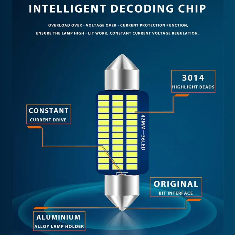 Car interior lights, roof lights, license plate lights, tail lights, footwell lights, reading lights, atmosphere lights, map lights, makeup lights, interior lights, camping lights, trunk lights, etc.