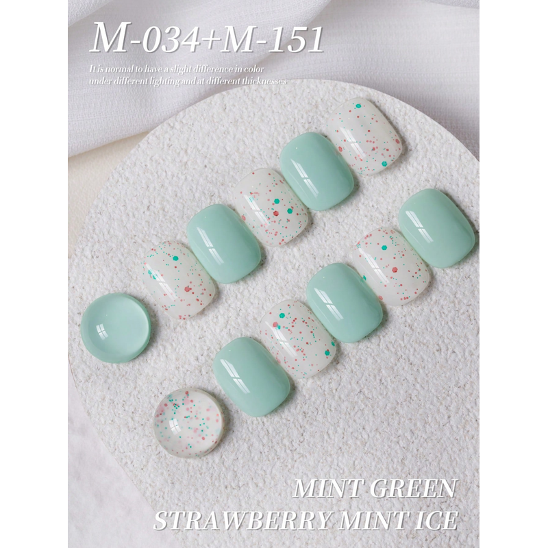 2Pcs 15ML Mint Green And Strawberry Mint Ice Nail Gel Set Semi Permanent Nail Art Soaking UV LED Nail Salon DIY Nail Salon Gel