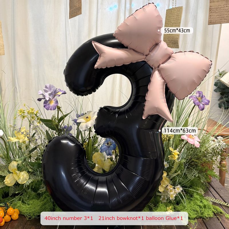 2pcs 40inch Black Bowknot Number Foil Balloons Photo Props Wedding Birthday Party Decorations Anniversary Decoration
