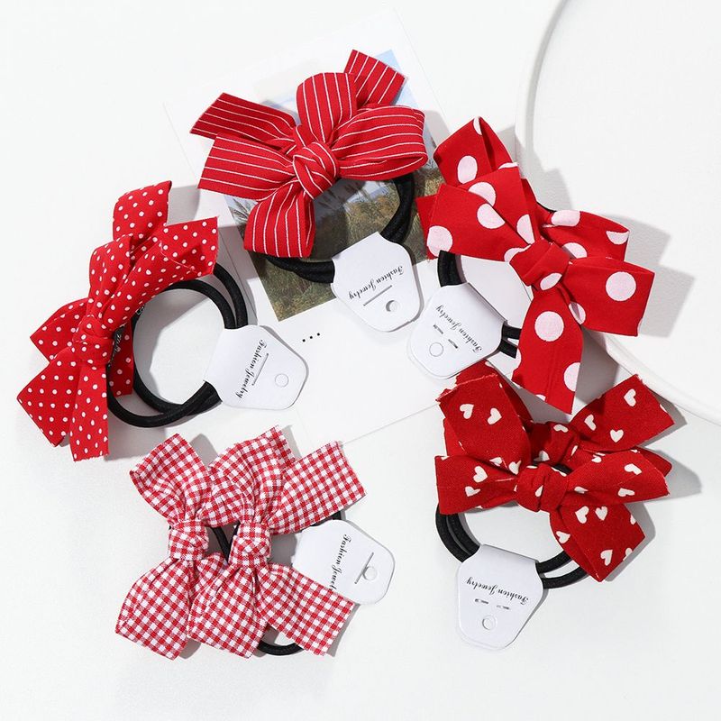 2pcs Baby Girls Fashion Bow Tie Rubber Band Elastic Hair Rope Red Knot Love Wave Spot Hair Butterfly Headwear Hair Accessories