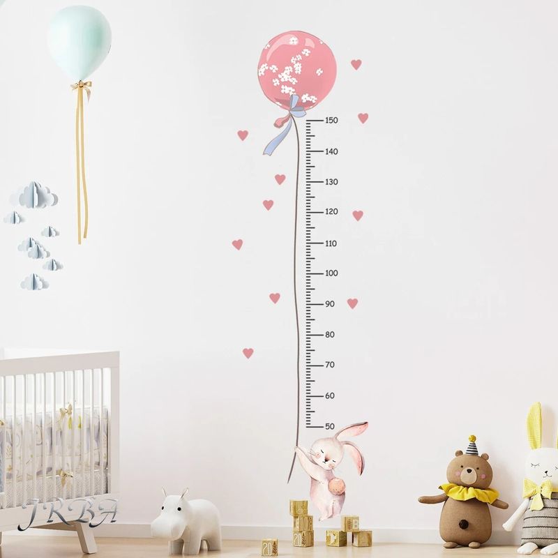 2Pcs Cartoon Cute Pink Rabbit Balloon Height Measurement Wall Stickers for Kids Room Bedroom Home Decoration Wall Decals