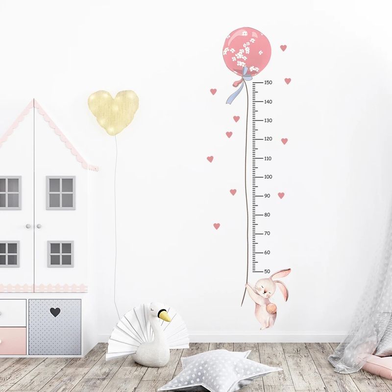 2Pcs Cartoon Cute Pink Rabbit Balloon Height Measurement Wall Stickers for Kids Room Bedroom Home Decoration Wall Decals