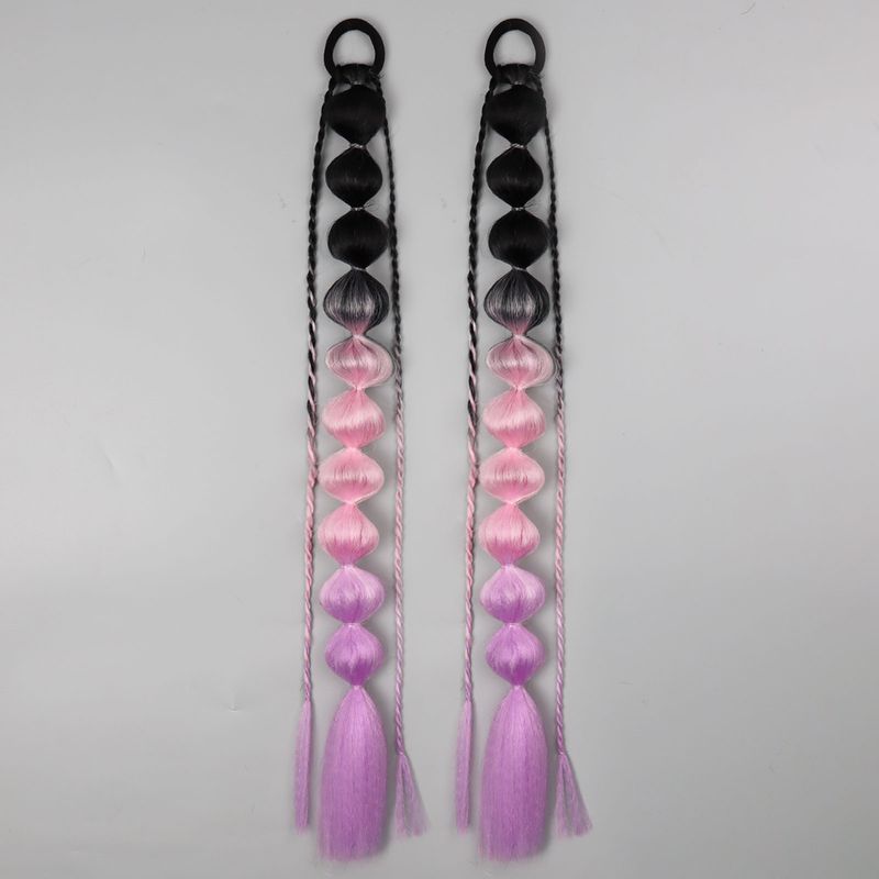 2PCS Colorful Synthetic Bubble Ponytail Extensions 24inches Lightweight Braided Hair Festival Rave Accessories for Girl Crazy