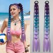 2PCS Colorful Synthetic Bubble Ponytail Extensions 24inches Lightweight Braided Hair Festival Rave Accessories for Girl Crazy