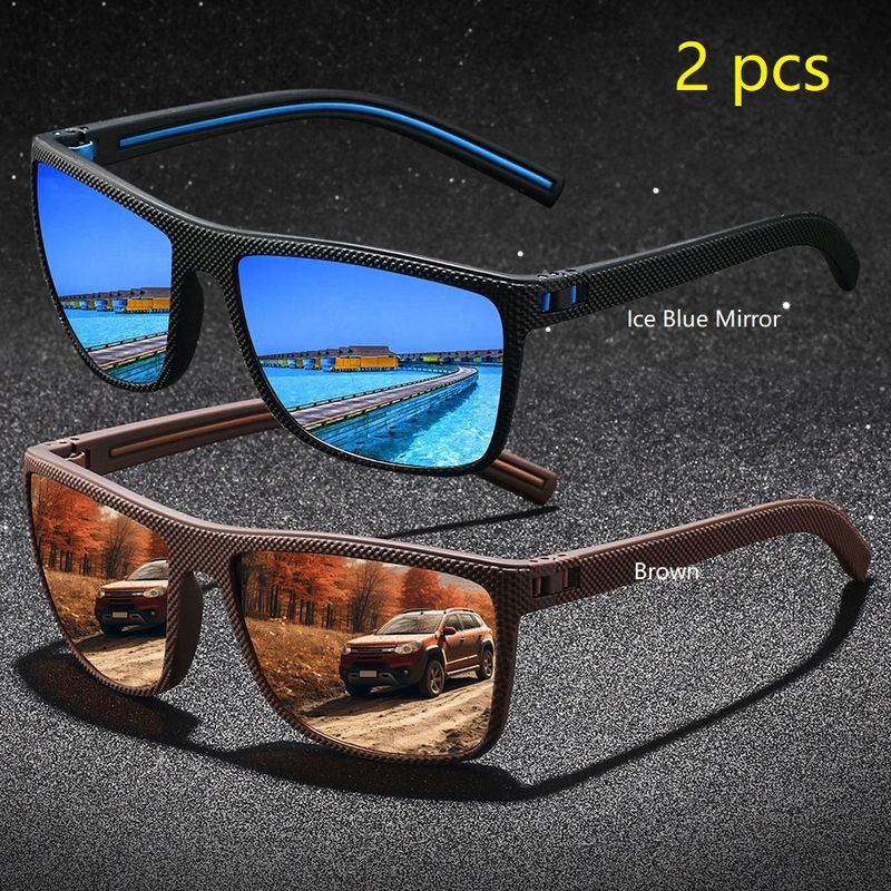 2PCS Fashion Vintage Check Pattern Sunglasses For Men Women Fishing Driving Fashion Square Brand Design Sun Glasses UV400 Eyewea