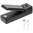 Feature: 1. 2 in 1 Heat Sealer & Cutter: Portable mini sealer can easily cut and seal plastic bags. Quick seal and cut. 2. & Keep Healthy: The sealer is a good choice to keep it fresh, you can use the sealer to seal the bag for future consumption. It's a dieting accessory. No need to buy fresh bags anymore, reseal unused portions of food, keep food in the fresh bag sealer heat sealer. 3. How to Use: Make sure the product is fully charged, then press the switch button to display blue. Press and hold for about 3-7 seconds to start heating. 4. Built-in 400mAh Battery: The sealing machine has a built-in rechargeable lithium battery with a capacity of 400mAh, and is equipped with a Micro USB charging cable, which can be charged through a computer, mobile phone, rechargeable battery, and charging head. 5. Application: The sealing machine is very suitable for snack bags, aluminum foil bags, potato chip bags, kraft paper bags, pet food bags, vacuum packaging bags, etc. Specification: Vacuum Food Sealers: Heat Sealing Machine Vacuum Packing Machine: Snack Bags Vacuum Sealer Type: Hand Held Model Number: Vacuum Food Sealers Name: Charging Sealing Machine Material: ABS+stainless steel+ceramic Product size: About 3.5x2.6x11.00CM/1.37x1.02x4.33in Package size: About 4.2x8.4x14.6CM/1.65x3.3x5.74in Weight: 180g Battery capacity: 400mAh polymer lithium battery Color (optional): White, Black, White + Black