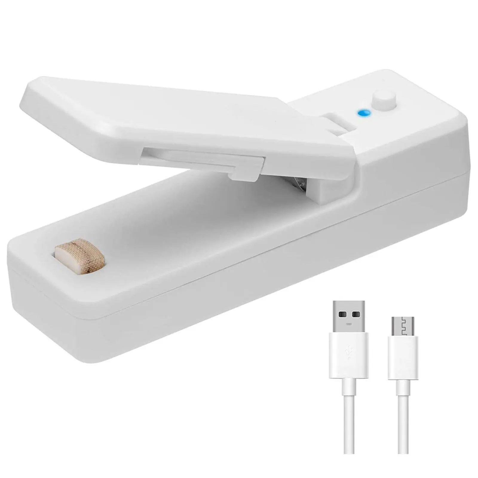 4. Built-in 400mAh Battery: The sealing machine has a built-in rechargeable lithium battery with a capacity of 400mAh, and is equipped with a Micro USB charging cable, which can be charged through a computer, mobile phone, rechargeable battery, and charging head.