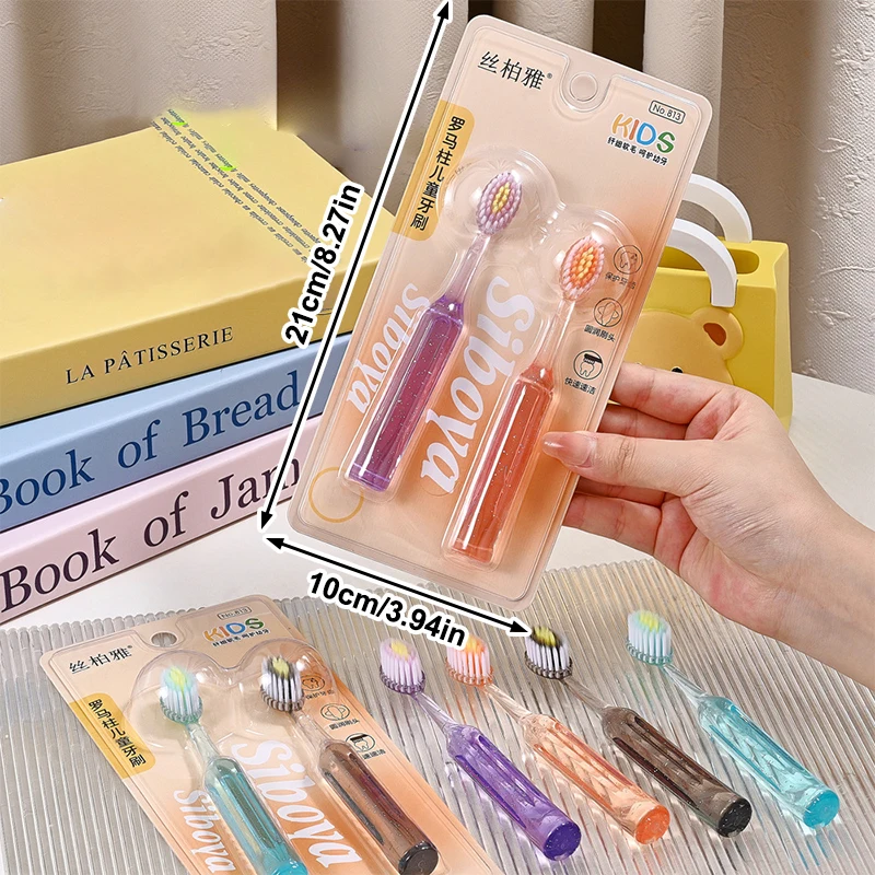 This children's toothbrush features a unique mountain-shaped convex design that adapts to the structure of a child's mouth, providing comprehensive cleaning and helping to remove food particles and oral dirt.