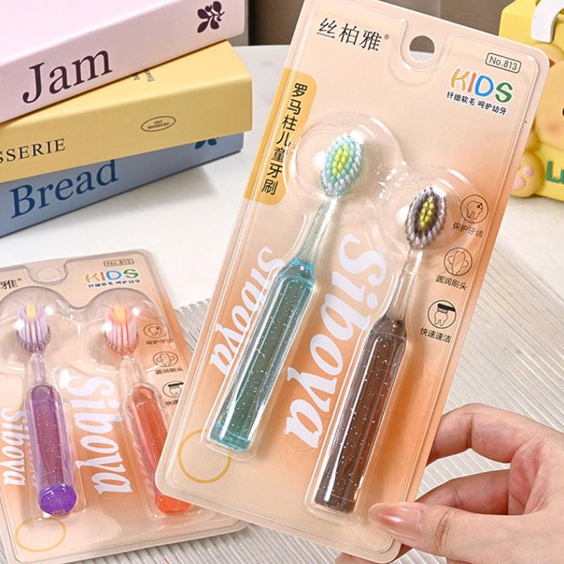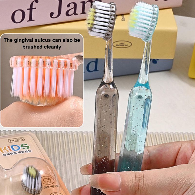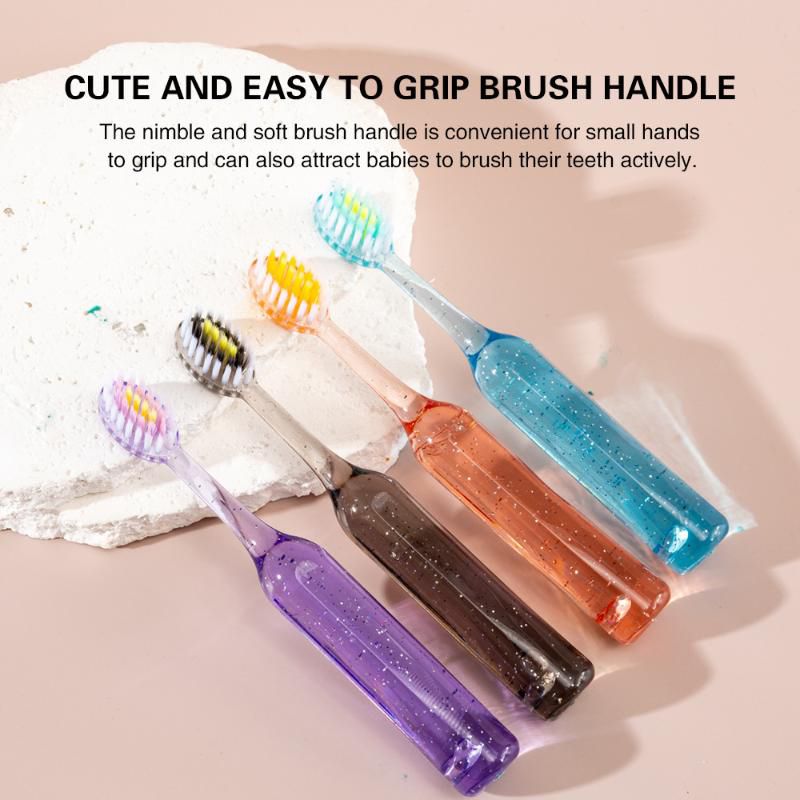 This children's toothbrush features a unique mountain-shaped convex design that adapts to the structure of a child's mouth, providing comprehensive cleaning and helping to remove food particles and oral dirt.