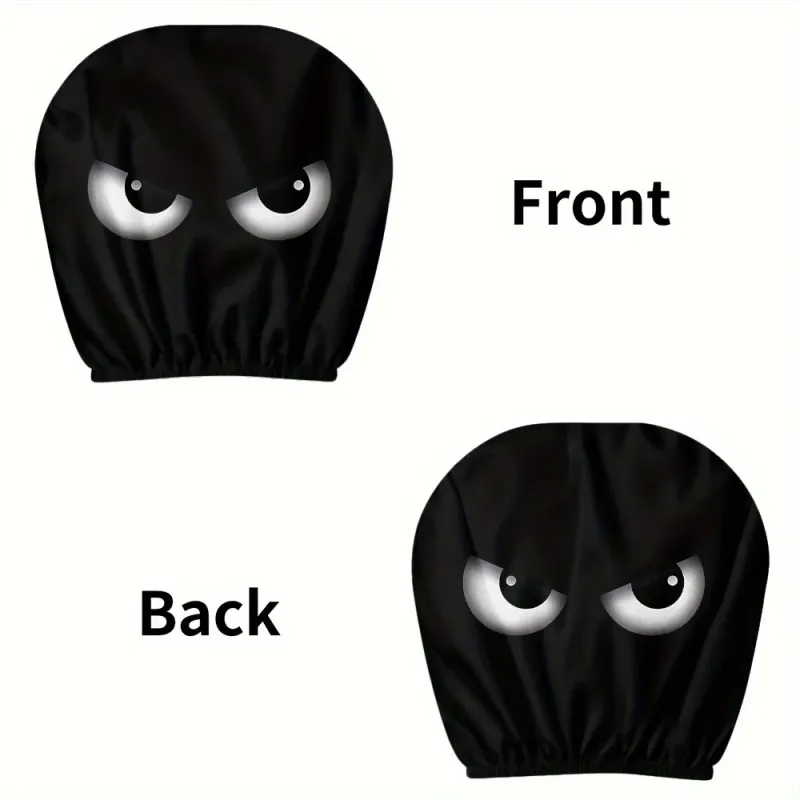 2PCS Funny Slanted Eyes Cartoon Print Car Headrest Cover for Halloween Christmas Holiday Automobile Interior Decoration