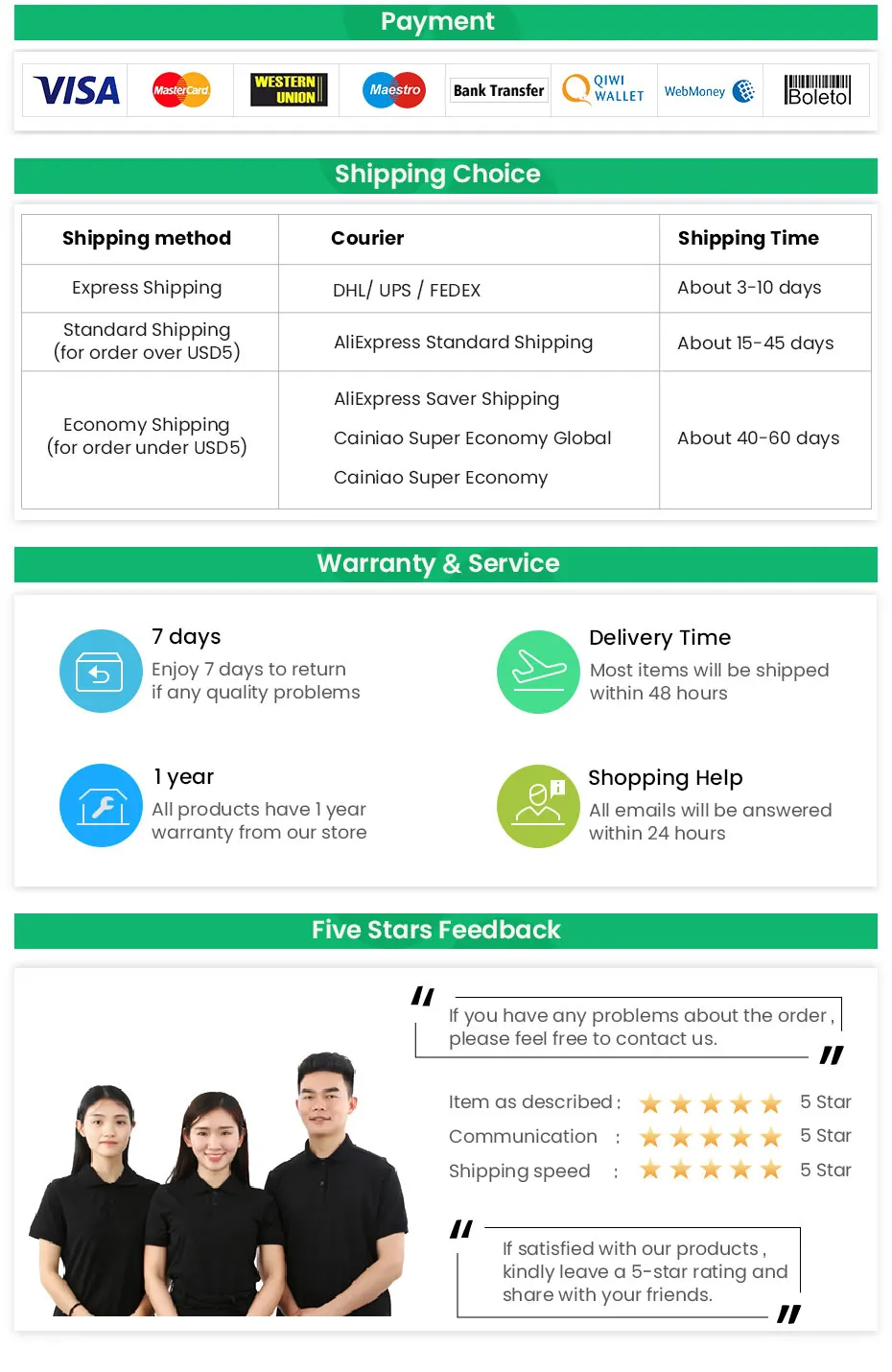 We accept the following payment options: