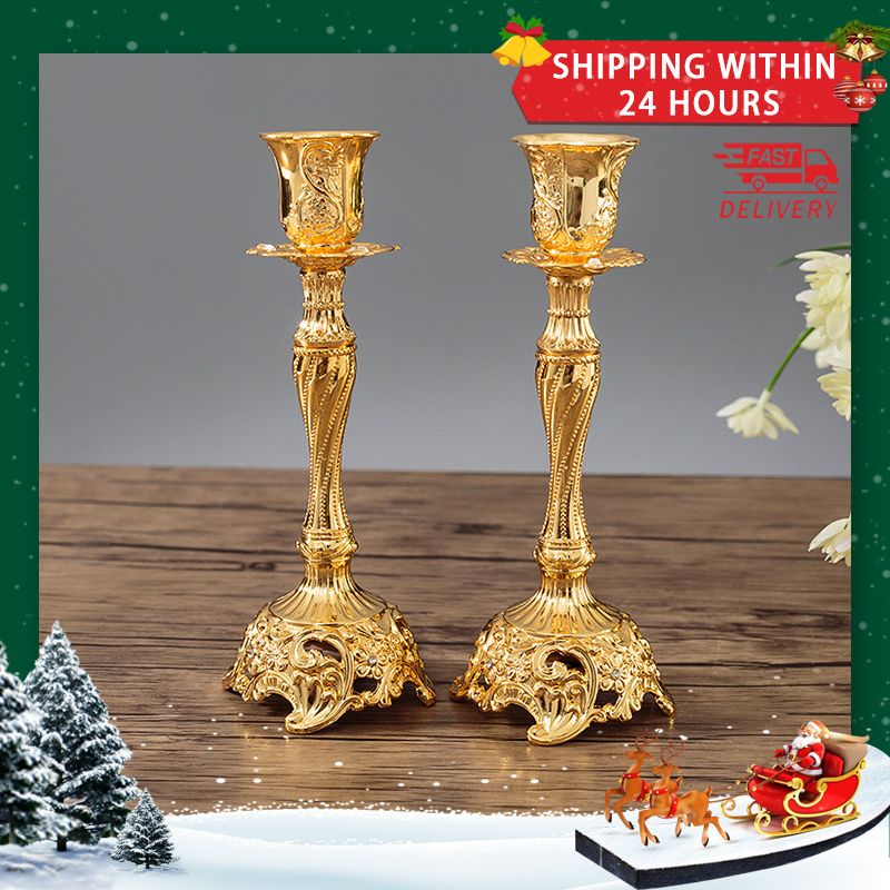 2Pcs Gold Silver Candle Holder Europe Wedding Metal Candle Stand God Candlesticks Metal Antiques Table Home Decoration