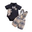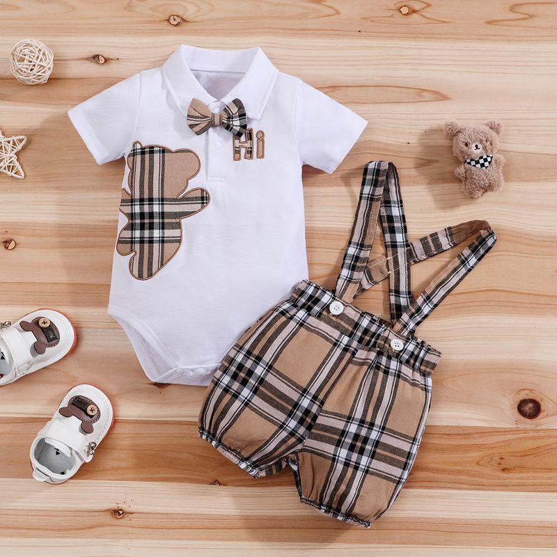 2PCS IURNXB Baby Clothes Sets Short Sleeve Boys Infant Plaid Bear Bodysuit+Suspenders Trousers Set Overall Newborn Outfits 1-18M