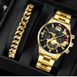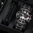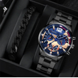 2pcs Men's New Popular Steel Strip Fashion Business Three Eye Quartz Watch Bracelet Set Valentine's Day Gifts Black And Blue