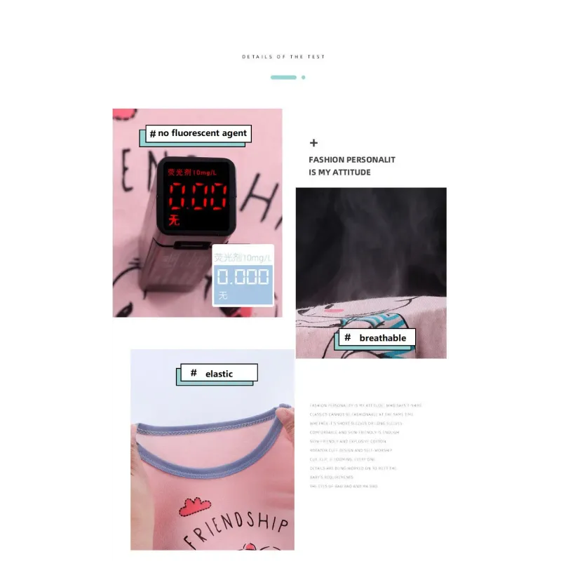 Our short sleeved set is made of 100% pure cotton, with a delicate, soft, breathable fabric that is not easy to pilling and does not fade when washed. It is suitable for summer wear