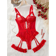 2pcs Red Floral Lace Garter Lingerie Set With Choker Women Intimates 2022 Underwire Bra And Thongs Ladies Underwear Set