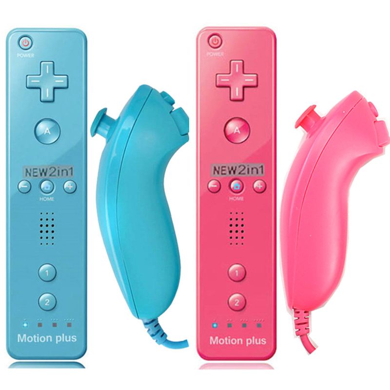 2PCS Remote Controller with Nunchuck Controller for Wii Console Wireless Gamepad with Motion Plus for Wii Games Control