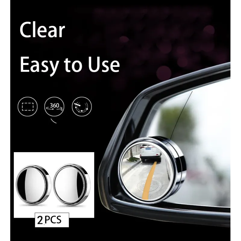 2Pcs Round Frame Convex Blind Spot Mirror Safety Driving Wide-angle 360 Degree Adjustable Clear Rearview Mirror Car Accessories